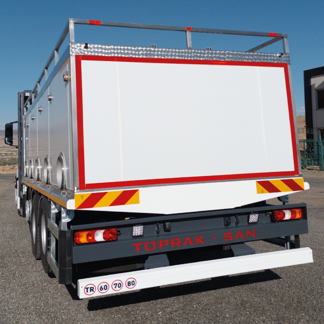 EĞİMİ OLAN TABAN, HER TANK İÇİN AYRI DOLDURMA VE BOŞALTMA KAPAKLARI, YALITIMLI